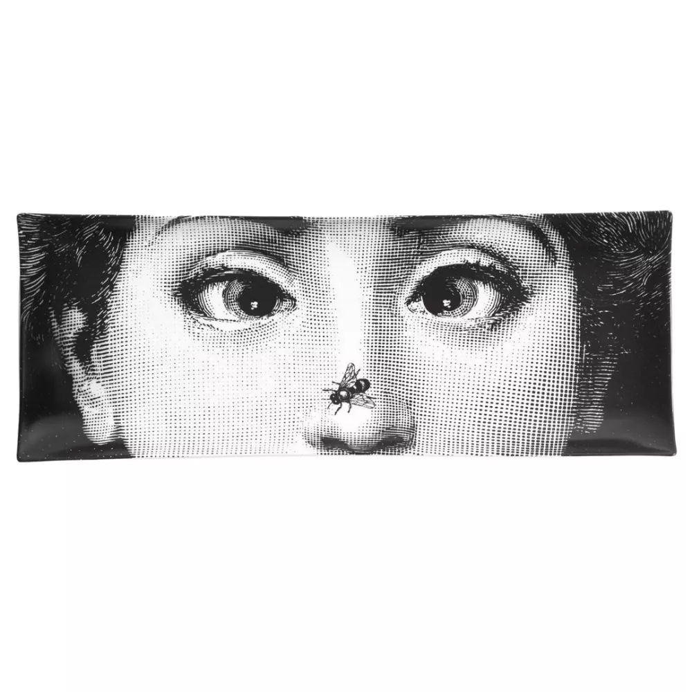 The timeless features of Lina Cavalieri appear on this hand-decorated porcelain tray, part of the iconic Tema e Variazioni collection. Each detail embodies the enduring charm of Fornasetti’s art, making it a true collectible piece. Minor variations are a testament to artisanal craftsmanship, highlighting the uniqueness of every creation.