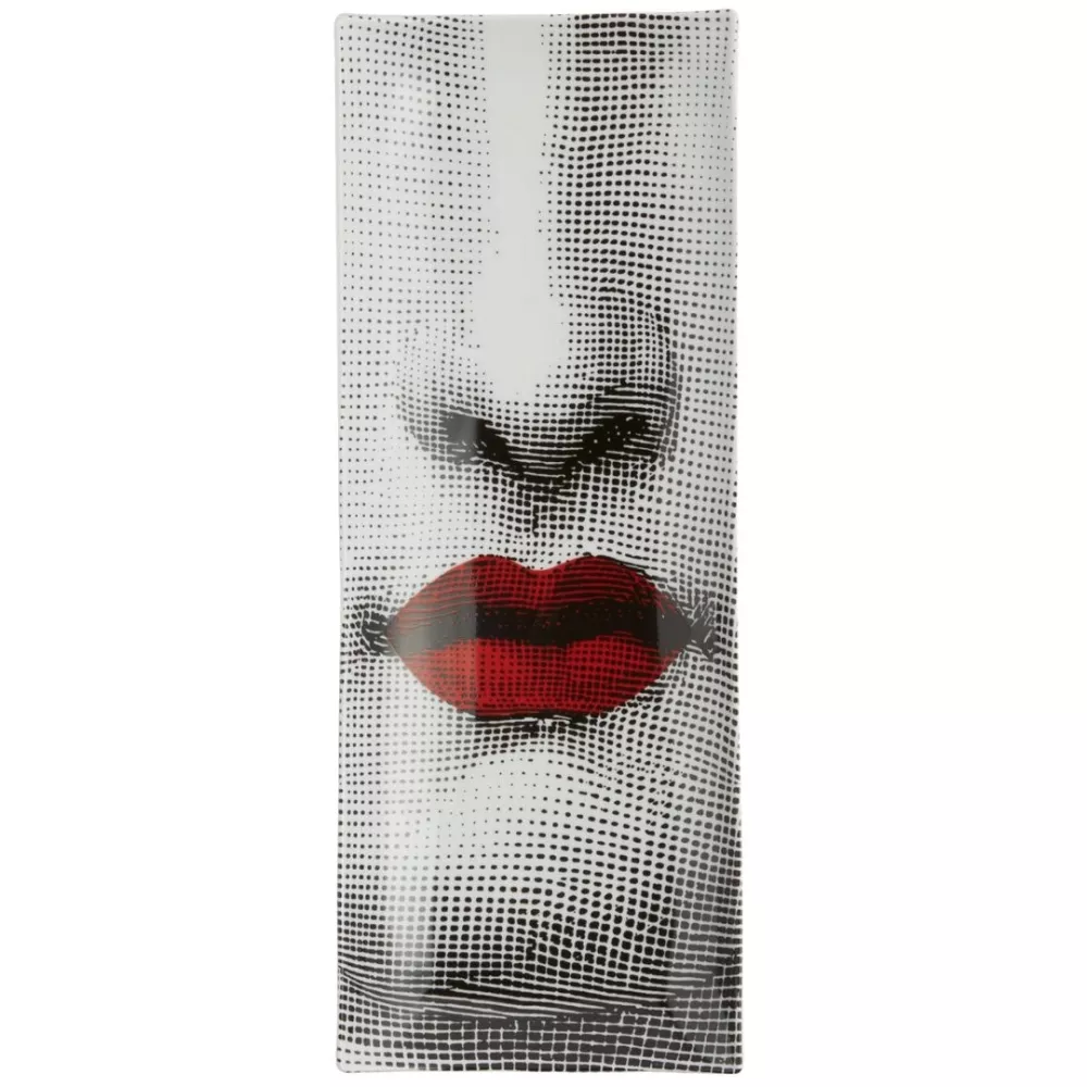 The classic black and white of the Tema e Variazioni series is brought to life with vibrant red in the Red Lips collection, where the sensual detail of Lina Cavalieri’s lips reveals Fornasetti’s most eccentric and pop spirit. This hand-decorated porcelain tray is the perfect gift for collectors and for those who love to impress with distinctive home décor. Each slight variation reflects artisanal craftsmanship, making every piece unique.