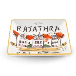 The Rajathra Palace valet tray by Ginori 1735 belongs to the Profumi Luchino collection, designed by Luke Edward Hall. Crafted in fine porcelain with pure gold trim, it reflects the artist’s memories of Rajasthan, evoking the enchanting colors and atmospheres of India. A refined design object, it combines Italian craftsmanship, elegance and narrative flair, making it a distinctive piece within a collection where imagination meets reality. A luxurious accessory that enhances both everyday use and home décor.