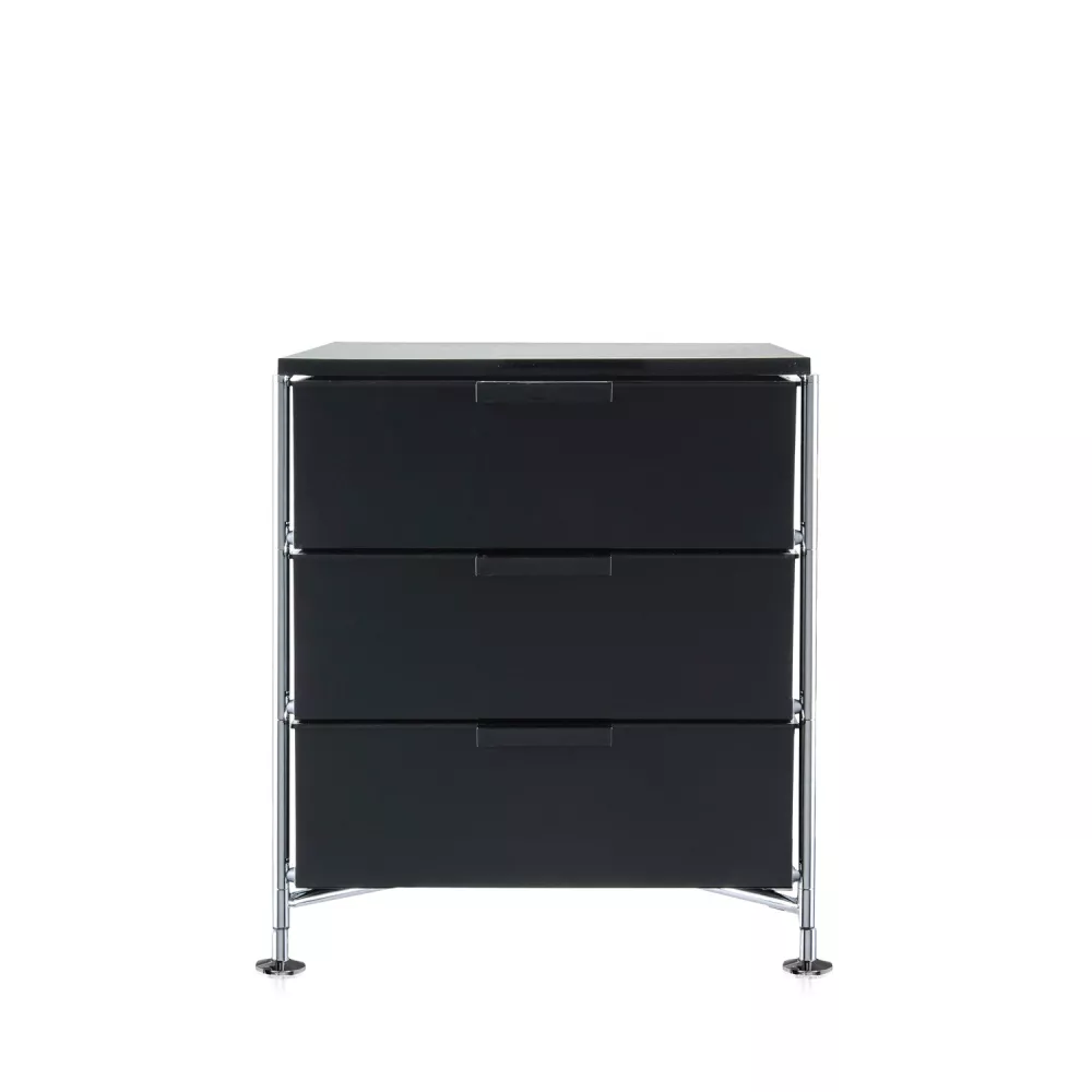 SLATE CONTAINER, 3 DRAWERS, "MOBIL", 2011/L5 - KARTELL by Antonio Citterio with Oliver Löw Mobil is a system of containers that can boast at the same time the value of lightness, mobility, functionality, strength and durability. For their design and the glamor of the colors proposed, they are suitable to be inserted in all the rooms of the home and office, responding to different functions of use. Material Structure: Chromed steel Shelves and drawers: transparent anti-scratch or scratch-resistant PMMA Dimensions: 49 x 55 x 47.5 cm Weight: 14.6 kg