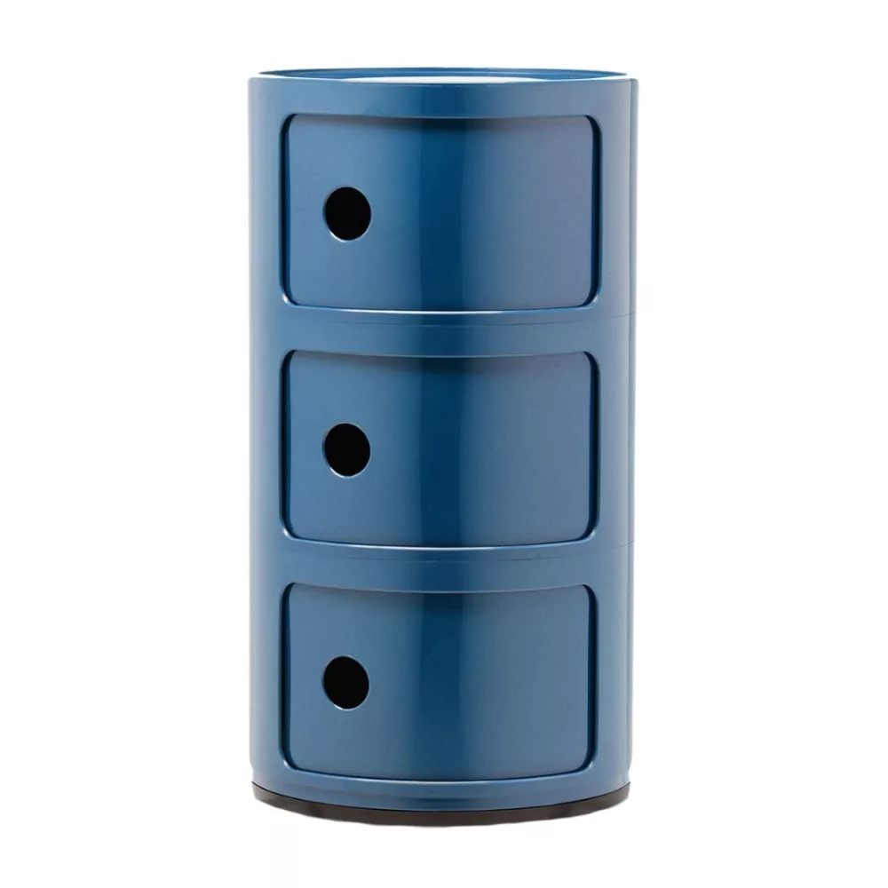 Designed by Anna Castelli Ferrieri for Kartell, the Componibile 3 Elements unit is an icon of Italian design, blending timeless aesthetics with practical functionality. It is typically used as a side table next to sofas or armchairs, as a small cabinet for an office or study, as an entryway storage unit, as a bathroom cabinet, or as a bedside table. Created in 1967, this modular storage solution offers versatility and elegance for both home and office spaces. The stackable modules connect through a clever interlocking system, creating a sleek and compact storage unit adaptable to multiple uses. Available in a variety of colors and finishes, including an eco-friendly bioplastic version, this piece embodies Kartell’s vision of innovation and style. A true design classic that transcends generations.