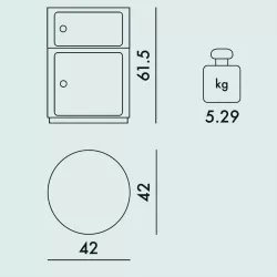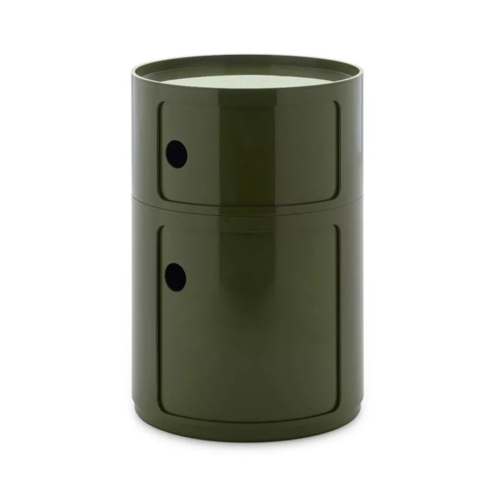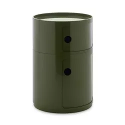 The 42 cm large Componibili by Kartell, designed by Anna Castelli Ferrieri, embody the evolution of a true design icon. It is typically used as a side table next to sofas or armchairs, as a small cabinet for an office or study, as an entryway storage unit, as a bathroom cabinet, or as a bedside table. This updated version features a new industrial mould that enhances both aesthetic quality and structural performance, refining surfaces and proportions. Available in a sophisticated colour palette that blends contemporary shades with elegant vintage references, it fits seamlessly into both modern and classic interiors. Functional and versatile, it is a bold furnishing solution that expresses iconic storage, timeless design, smart modularity and authentic Kartell style.