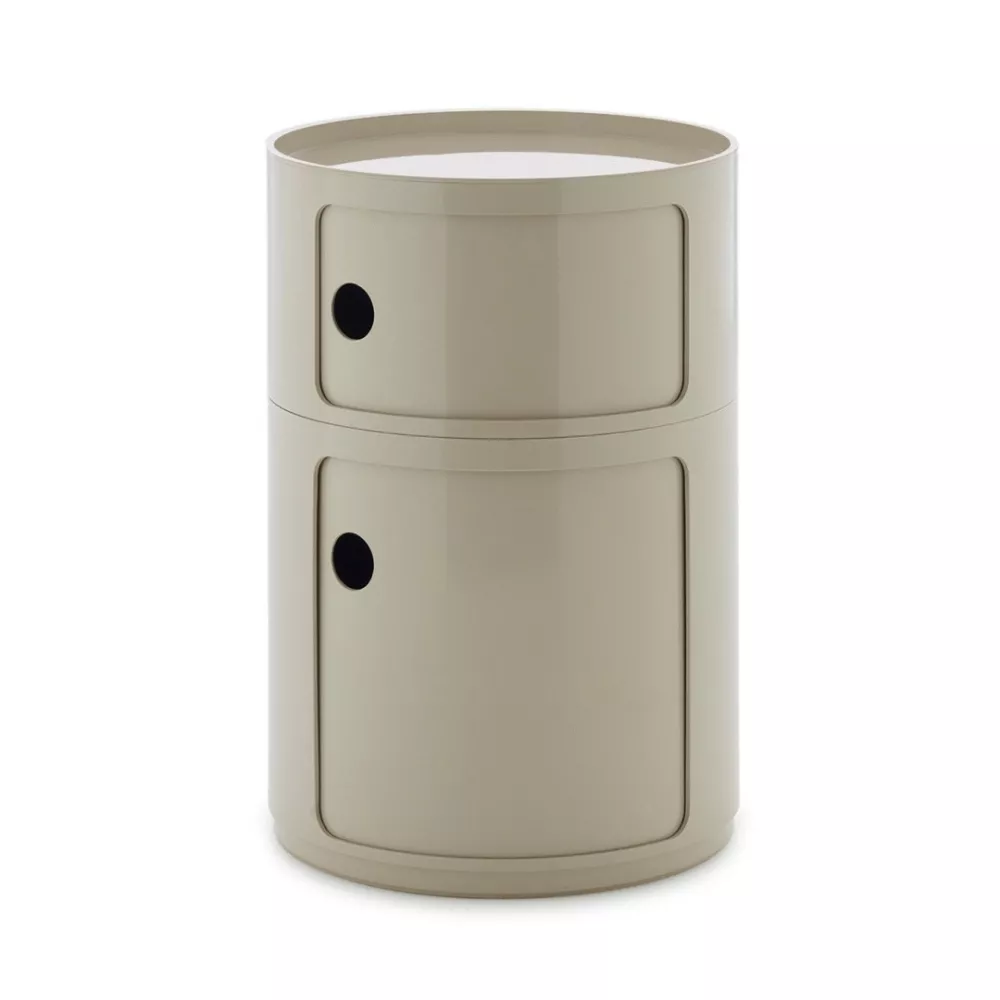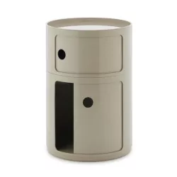 The 42 cm large Componibili by Kartell, designed by Anna Castelli Ferrieri, embody the evolution of a true design icon. It is typically used as a side table next to sofas or armchairs, as a small cabinet for an office or study, as an entryway storage unit, as a bathroom cabinet, or as a bedside table. This updated version features a new industrial mould that enhances both aesthetic quality and structural performance, refining surfaces and proportions. Available in a sophisticated colour palette that blends contemporary shades with elegant vintage references, it fits seamlessly into both modern and classic interiors. Functional and versatile, it is a bold furnishing solution that expresses iconic storage, timeless design, smart modularity and authentic Kartell style.
