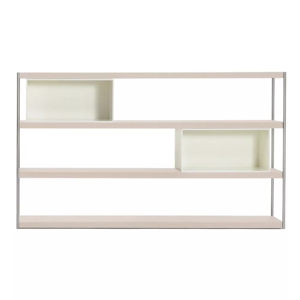 WiseWise, designed by Piero Lissoni, is an innovative modular bookcase that redefines the concept of storage. More than a container, it acts as a mini-architecture that can evolve into a bookcase, console, or sofa element. Its modular system, based on shelves and stackable boxes, offers endless possibilities to create versatile and dynamic solutions tailored to any space. Combining wood and painted steel, Kartell delivers a refined and functional design piece that embodies creativity, flexibility, and timeless elegance.