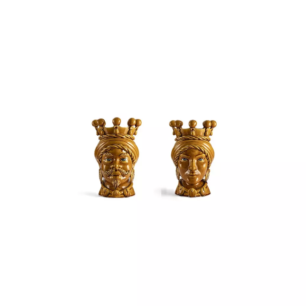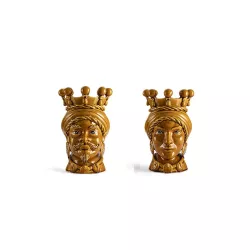 Each item is the result of tradition, research, and passion, defining a unique and never identical artistic product. The small irregularities and discolorations narrate the story of a typical artisanal and high-quality craftsmanship that conceals the originality and exclusivity of every Bevilacqua creation, skillfully and expertly hand-decorated. Made in: Handmade in Sicily, italy Material: Ceramic Around the year 1000, during the Arab domination in the Kalsa district of Palermo, a story unfolds of a young and beautiful girl who spent her days caring for the plants on her balcony. One day, a young Moor passed by and fell madly in love with her, a feeling reciprocated by the girl. However, deception was just around the corner. The man had not told the girl that, beyond the sea, he had a wife and children to whom he had to return soon. Blinded by jealousy, she killed him in his sleep by beheading. To keep him with her always, she turned his head into a sort of vase in which she planted basil. The plant, watered every day with her tears, grew increasingly lush, arousing the curiosity of the neighbors who, envious, had local craftsmen build vases with the same features as those of the girl.