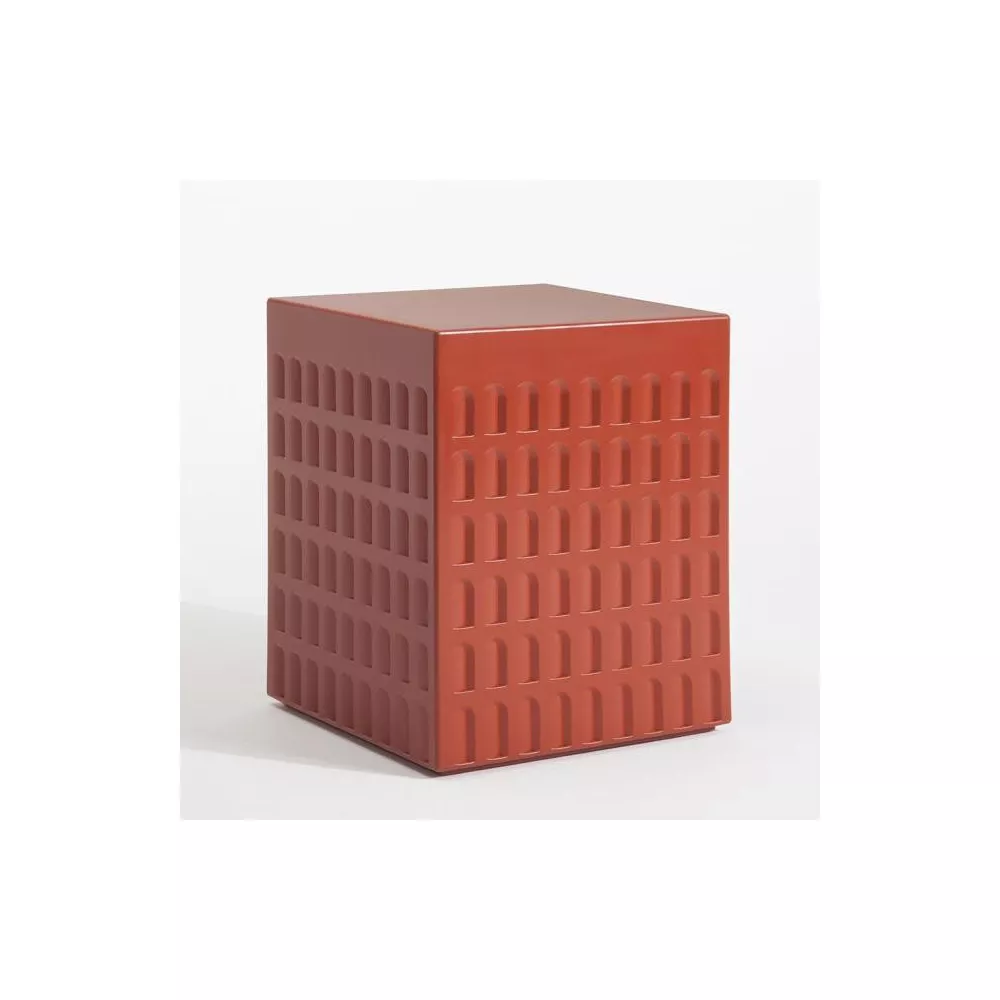 Kartell EUR Side Table by Fabio Novembre The EUR stool by Fabio Novembre is a cube printed with shapes and geometries inspired, to scale, by Italian rationalist architecture of the 1930s and 40s. The stool can be multi-purposed as seat or support and fits into a variety of locations and styles. Just like the buildings of this period, the stool transcends time and becomes part of the Kartell lifestyle. Material Tecnopolimero termoplastico colorato in massa Dimensions Width: 36 CM Depth: 36 CM Height: 45 CM Diameter: 45 CM Unit weight: 4 kg