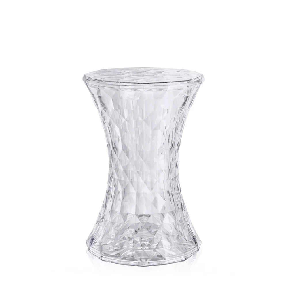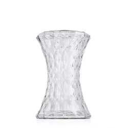 STONE STOOL, 8800 - KARTELL Stone, designed by Marcel Wanders, is a low stool crafted with an essential, linear, and symmetrical shape that resembles an hourglass. However, what sets Stone apart is its irregular surface, composed of multiple reflective geometric facets. This creates a captivating light effect that gives the stool a diamond-like appearance. Thanks to this unique play of colors, Stone shines and captures attention like a precious gem. Material Structure: Transparent or Mass-Colored Polycarbonate Fireproof: Not Fireproof Use: Outdoor Height: 45 cm Diameter: 30 cm