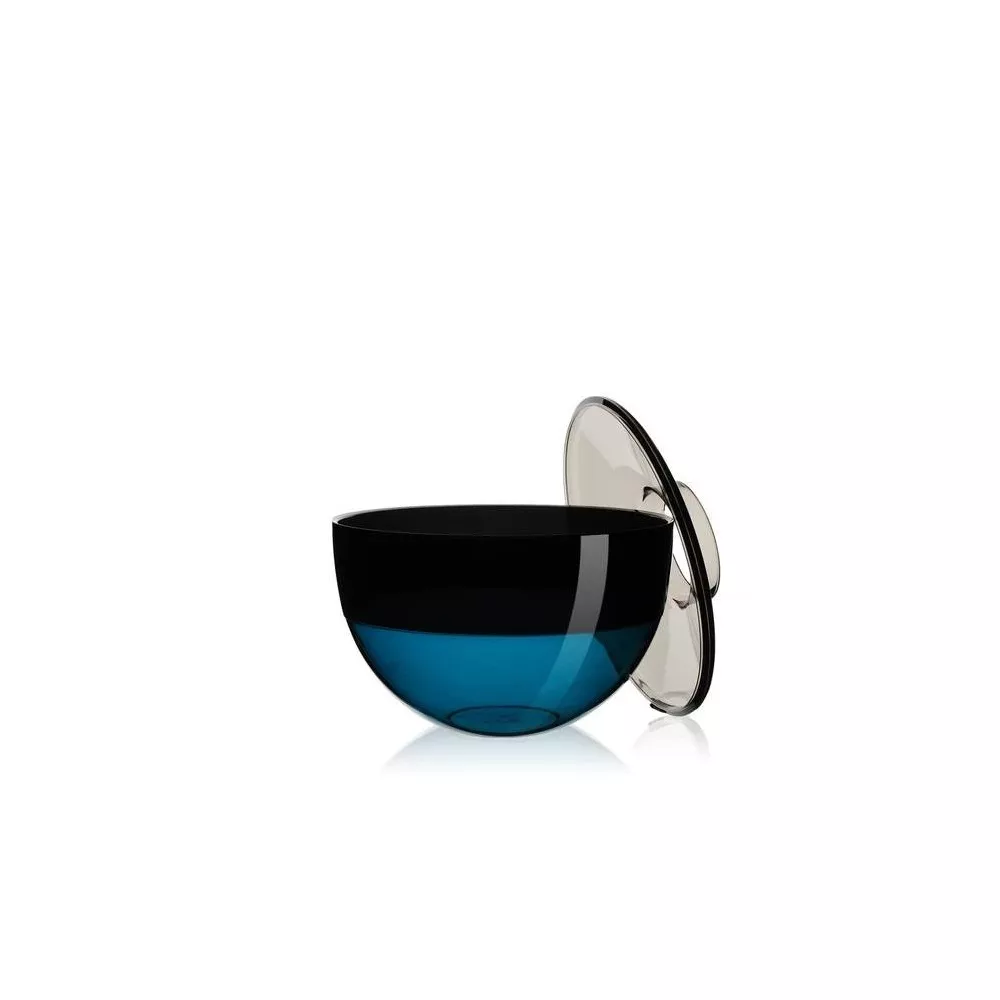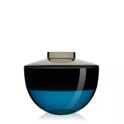 SHIBUYA CONTAINER VASE, 1221 - KARTELL Kartell undertakes a groundbreaking experiment with the Shibuya vases designed by Christophe Pillet, aiming to transform plastic into something truly extraordinary. These vases are made to appear "precious," exuding richness and fullness reminiscent of Murano blown glass. What sets the Shibuya vases apart is their versatility beyond mere decoration, as they feature a perforated lid that effortlessly turns them into functional table accessories. However, the true uniqueness lies in the seamless integration of two colored bands on the vase's surface, ensuring a flawless water-tight seal. The project's focal point is color, with its intensity and depth complementing the substantial nature of the plastic material, imbuing the object with exceptional value despite its industrial-scale production and affordable price. Material: Transparent or mass-colored PMMA Dimensions: Height: 22 cm Diameter: 27 cm Unit weight: 0.072 kg