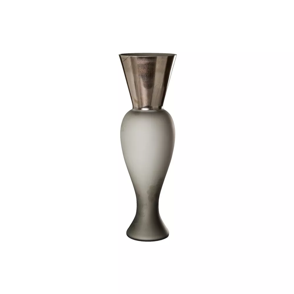 QUEEN VASE 515/14 - VENINI The "Regina" line of Venini vases is a collection of hand-blown glass vases, characterized by elegant and sinuous shapes inspired by the tradition of Venetian design. Each vase is made with the expertise of Venini's master glassmakers, who use traditional Venetian techniques to create the shapes and textures. The "Regina" line features a wide range of vases of different sizes and colors, which can be used as decorative elements in multiple contexts, from classic to modern. The artisanal glassblowing process enhances the transparency and luminosity of the material, creating plays of light and reflections that make each vase a unique and precious work of art. Thanks to its timeless elegance and artisanal quality, the "Regina" line of Venini represents an excellent choice for those looking for high-value artistic pieces for their home or as a gift. FEATURES H 50 cm x D 16 cm Weight: 1.82 kg OPALINE, DECORATION WITH HOT APPLIED METAL EFFECT + SANDBLASTED Venini Regina Vase by Rodolfo Dordoni Blown handmade glass vases. Upper part, the crown, is covered by metal leaves. The lower part is glazed. Dimensions: Ø 16 cm , H 50 cm