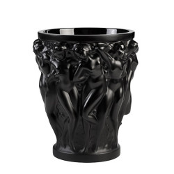 In 1927, the boundless imagination and creative genius of René Lalique led to the creation of the Bacchantes vase. With splendid insolence and intriguing sensuality, the young priestesses of Bacchus offered their beauty and their curves. Today, this majestic ode to femininity is reinterpreted in the small size vase. This round of sculptural nudes is an emblematic style of Lalique. The satin crystal recalls the smoothness of skin texture while the play of light breathes life and movement into the piece, shaped by the artist's hand. Material: Crystal Dimensions: M: H 14.6 x D 12.3 cm L: H 24 x D 21 cm Weight: M: 1.4 kg L: 6 kg Handcrafted in France