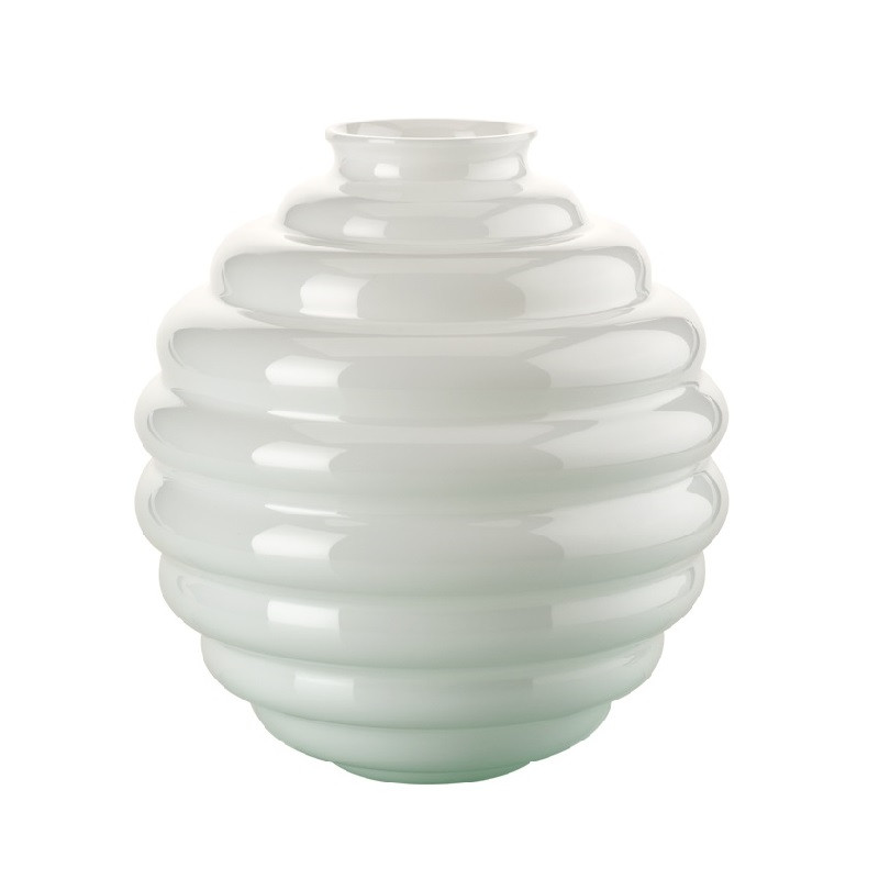 Rhythm: this is the word to define the shape of the vases in the Deco series. The rings repeat, one after the other, increasing, decreasing, then increasing again. They seem to move like circles in water with waves and reflections. This rhythmic movement creates a unique and captivating visual dance. Made with the opalino and blown glass techniques, these vases combine artisanal craftsmanship and artistic design, making them an elegant addition to any setting. Part of the Deco collection, introduced in 1930, these vases are an example of high-quality Italian craftsmanship.