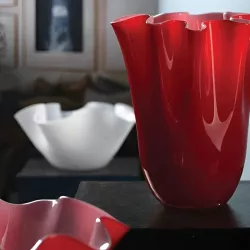 Fluid elegance defines the Wave centerpiece by Onlylux, mouth-blown in opaline smoky glass. Its wavy, hand-shaped "handkerchief" edge creates a dynamic and sophisticated design, perfect for enhancing both modern and classic interiors. Delivered in its original box with a certificate of authenticity, this decorative piece adds a refined presence to your home decor.