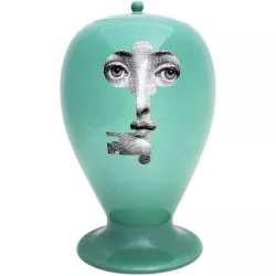 The iconic silhouette of Fornasetti vases, drawn from an archival design, comes to life in this limited edition handmade ceramic piece. On the front and back, Lina Cavalieri’s face appears in two different expressions, combining an irreverent spirit with the Atelier’s timeless design. The beloved Chiave/Serratura motif is reimagined here in an elegant green variation. Each artisanal detail makes this an exclusive collector’s piece, truly one of a kind.