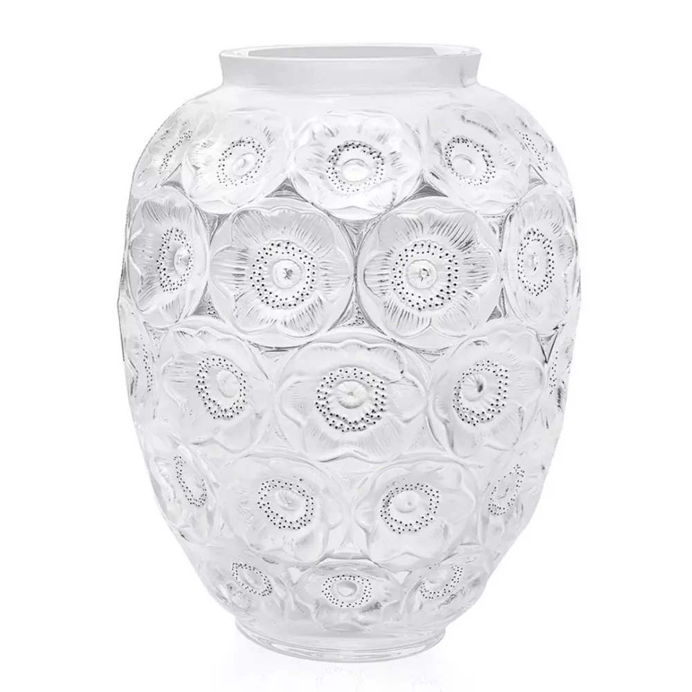 Among flowers, the anemone – a symbol of purity and innocence – particularly fascinated René Lalique, who made it the centerpiece of many jewels and decorative pieces. The Anemones Vase offers a contemporary interpretation of this motif, crafted in satin-finished and re-polished clear crystal, enriched with black enamel accents. The juxtaposed blossoms create a striking graphic rhythm, capturing the fleeting beauty of nature in a majestic and timeless design. A masterpiece of Lalique craftsmanship, this vase embodies elegance and sculptural presence.