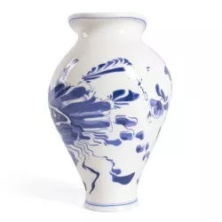The Floral Delft vase from the Classics on Acid collection, created in collaboration between Diesel Living and Seletti, offers a contemporary twist on traditional Dutch Delft ceramics. Its rounded body and asymmetric neck create a dynamic, unexpected silhouette, while the blue decorative pattern blends vintage charm with a bold modern attitude. A statement piece that turns everyday decor into expressive design, perfect for adding visual impact to any setting.