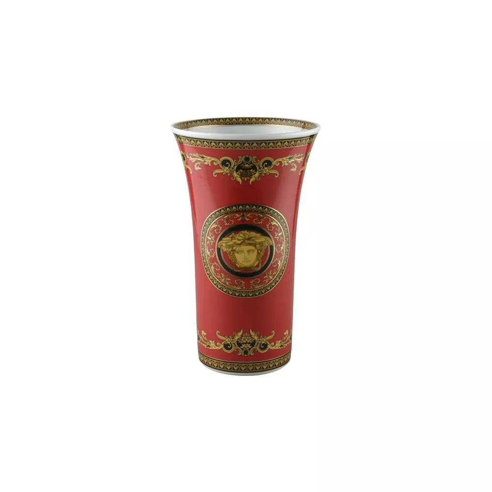 Fine porcelain made vase with a luxurious decoration where the red color that characterizes this Medusa motif prevails. The gold friezes give the object a particularly rich and sumptuous style. Dimensions: h cm 34