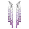 An explosion of creativity and color to elevate your style. The Matrix collection clip earrings feature a striking design with three strands of Swarovski Zirconia in a Round cut, gracefully blending from purple to transparent tones. The rhodium plating adds a luminous touch, making this jewelry piece perfect for those who love to stand out with elegance.