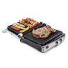 Grill&Taste is the new electric grill with modern and elegant lines suitable for preparing excellent toasts, panini, hamburgers, meat, fish and much more. The removable drip tray and the removable and washable grill plates allow to remove food residue easily. The five grilling levels make Grill&Taste the perfect appliance for who loves to prepare quick snacks and to heat up any kind of pizza and croutons. Thanks to the option of open plate grilling position, it is possible to cook and grill comfortably on an even wider surface. The timer and the temperature adjustment make easier and personalize cooking of the various dishes. Power 2000W Product length 36.50 cm Product width 33.00 cm Product height 17.50 cm Product weight 5.02 Kg