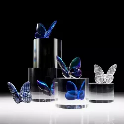The Lucky Butterfly by Baccarat, designed by Evelyne Julienne, is a refined creation embodying elegance and symbolism. Crafted from fine crystal, it showcases the Maison’s artisanal mastery through delicate lines and graceful wings that reflect light in a myriad of hues. Available in a wide range of colors, from deep blue to ruby red and iridescent shades, it is both an iconic decorative object and a precious good-luck charm. Ideal for enhancing any space or as an exclusive gift conveying grace and positive energy.