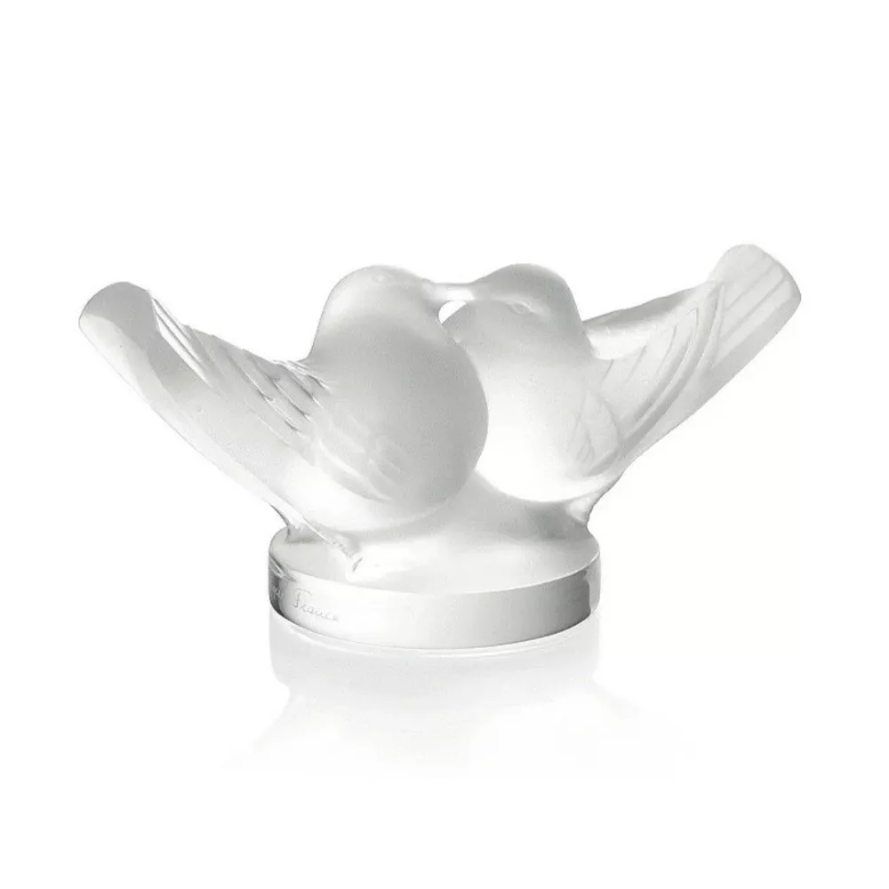 The 2 Lovebirds sculpture in clear crystal by Lalique symbolizes love and harmony with timeless elegance. Crafted with exquisite detail, the pure crystal captures light beautifully, enhancing the gentle forms of the two birds. An enchanting decorative piece and a meaningful gift of affection.