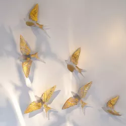 A symbol of freedom and renewal, the swallow has long inspired René Lalique, who made it central to many of his most poetic creations. With the Swallow Wings Down Wall Sculpture, Lalique pays tribute to the Master’s legacy, capturing the grace of flight in clear satin-finished and re-polished crystal with delicate gold-stamped details. This handcrafted piece features a magnetic mount for easy wall placement and can be paired with other swallows to create a striking decorative ensemble full of movement and light.