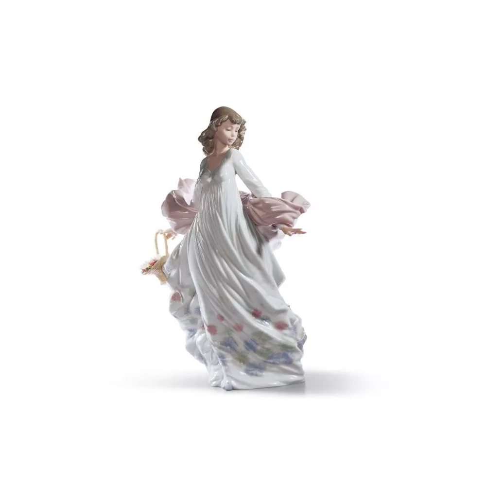 a classic piece from the Lladró catalog. the beautiful girl with her basket full of flowers represents the spirit of spring, an idealized and bright world where the sun always shines. a glossy porcelain creation decorated with soft pastel colors, perfect for decorating, gifting, or collecting. this item includes warranty weight: 1.25 kg finish: glossy dimensions: height: 30 cm width: 18 cm length: 15 cm sculptor: regino torrijos