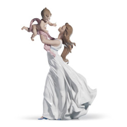 Lladró is a Spanish brand dedicated since 1953 to the creation of art porcelain figurines at the brand's only factory in the world, in Valencia. A world leader in the design, manufacturing and distribution of porcelain art creations, Lladró is a unique mix of talent, audacity and meticulousness in the quest for excellence. This is a piece with extraordinary attention to detail. The folds of the mother's dress are an excellent example of the artist's skill in modeling. From the union of mother and child are born moments of unbounded happiness, filled with caresses and affectionate gestures. A mother enfolds her child with love from the moment it comes into the world, and the memory of this maternal embrace stays with that child forever. Sculptor: Juan Carlos Ferri Herrero, Release year 2002 Dimensions: 46 x 29 cm