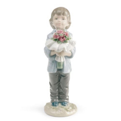 Peter Pan is a porcelain figurine of the Disney character. The boy who never grows up, he is forever ten years old and hates the adult world. His fairy friend Tinkerbell goes everywhere with him. Gloss finish porcelain. Decorated in the traditional colourway of the character, who is sitting on a tree trunk with 3 flowers. Dimensions: 25 x 13 cm