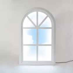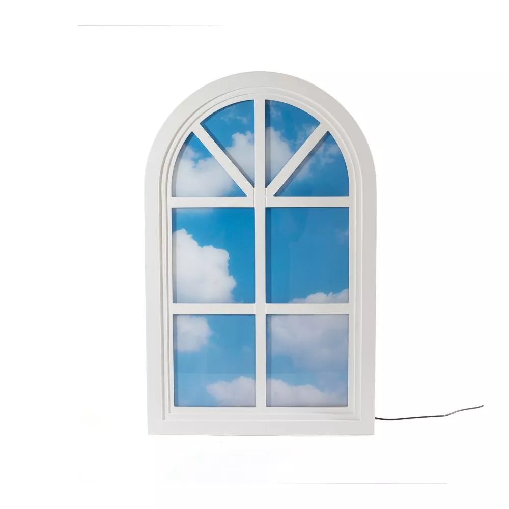 Grenier Window Lamp Seletti When someone think of a house, doors and windows become immediately apparent. Windows serve as the eyes of residences, allowing light to enter and brighten the rooms. A window presenting a scenic view of the sky is a positive and popular motif. These windows can be situated wherever desired, and there is no requirement for a builder or municipal permits. Design: Marcantonio Material: Wood / Acrylic Size: 57 h. 90 cm | 22.4'' x h.35,4'' SKU: 24001