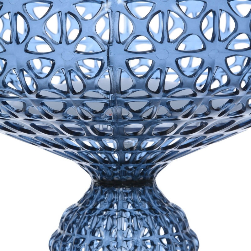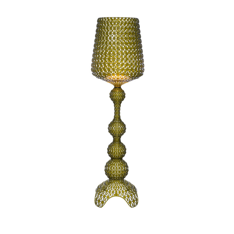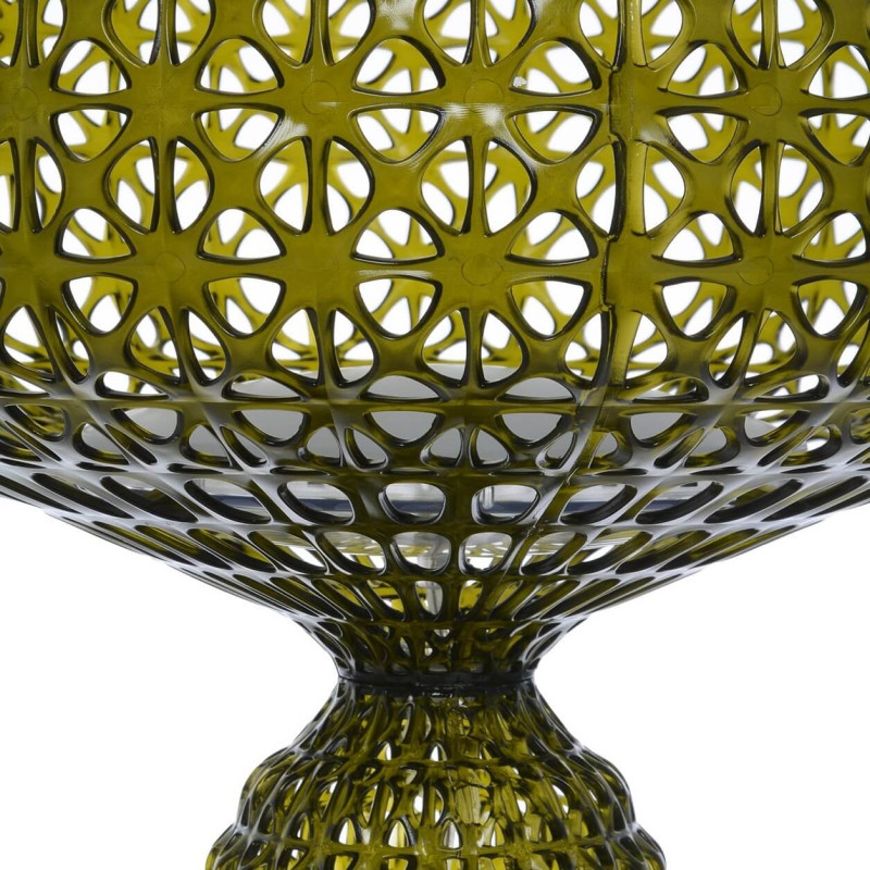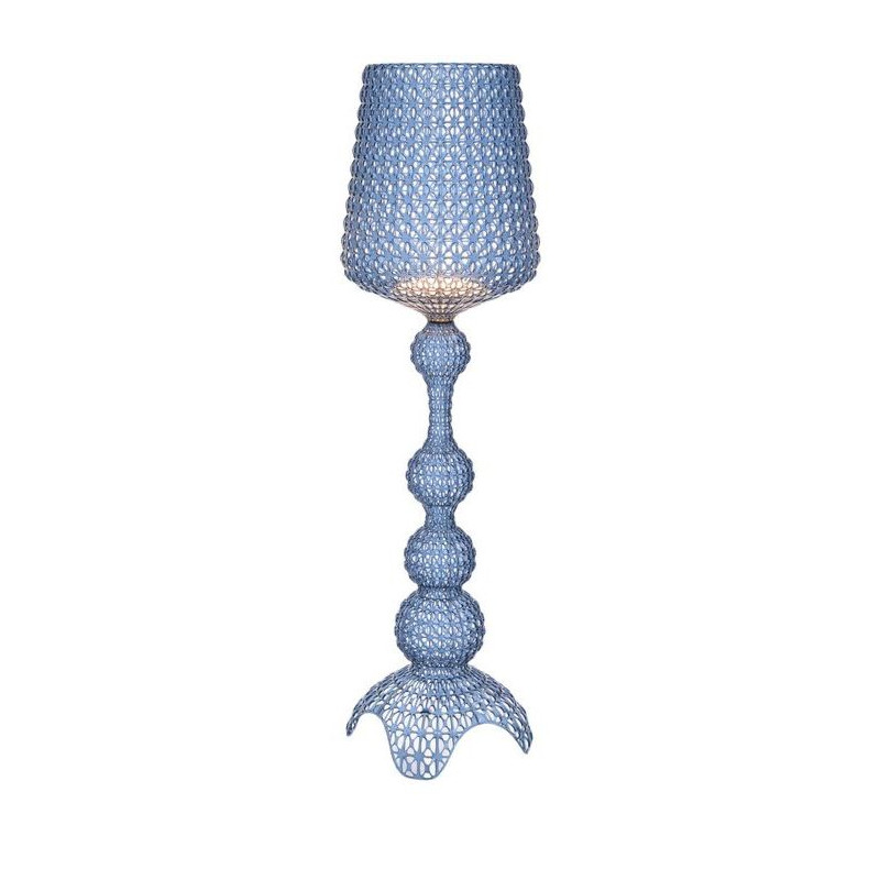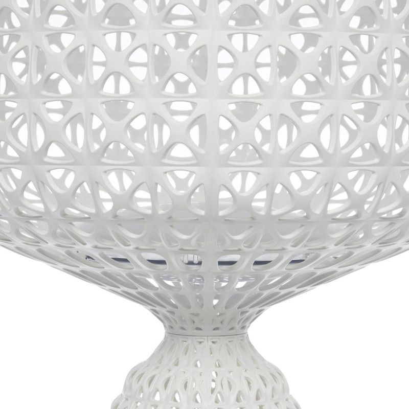 KABUKI FLOOR LAMP, 9180 - KARTELL The Kabuki floor lamp by Kartell is made using injection technology. This sophisticated technology allows for the creation of a lattice-like structure that resembles lace, with a perforated surface from which the light diffuses. Material Structure: mass-colored thermoplastic technopolymer dimensions Height: 166 cm Diameter: 50 cm Unit weight: 6.7 kg