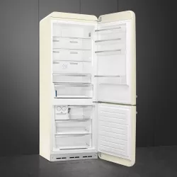The iconic Smeg 50's Style combined refrigerator blends vintage charm with advanced cooling technology. Featuring a spacious separate freezer compartment and a Total No Frost system with dual cooling circuits, it prevents ice build-up and ensures optimal food preservation. The internal fan and Multiflow system guarantee consistent cold air distribution, while the handy manual ice maker provides fresh ice cubes whenever needed. With a net capacity of over 480 liters, it delivers generous storage space and family-friendly functionality.