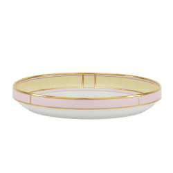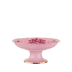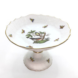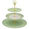 The golden handle, adorned with a single green crystal, enhances the refined appeal of this exquisite piece. Designed in collaboration with Rosenthal, this tiered stand is perfect for serving cakes, pastries, and fruits in impeccable style.