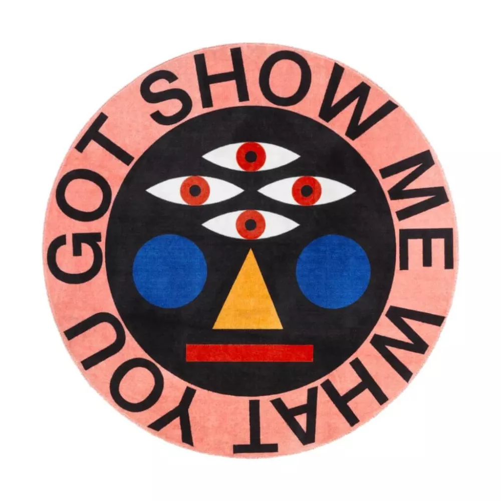 OGGIAN RUG, SHOW ME WHAT YOU GOT ROUND 42006RD-SM - QEEBOO Qeeboo continues the development of the rug family with a new collection designed by Marco Oggian, characterized by a variety of vibrant colors and strong geometries. Discover the Oggian rug, Show me what you got Round. Material: non-slip polyester, polyamide (nylon) Dimensions: 200 x 200 cm Weight: 6 kg