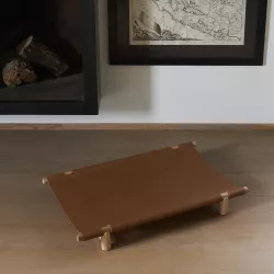 Provide your loyal four-legged friend with the utmost comfort during your travels with the portable bed Berberé. Designed for small-sized dogs, Berberé features a solid ash wood frame and a hammock made of natural leather with waterproof treatment, ensuring durability and long-lasting use.