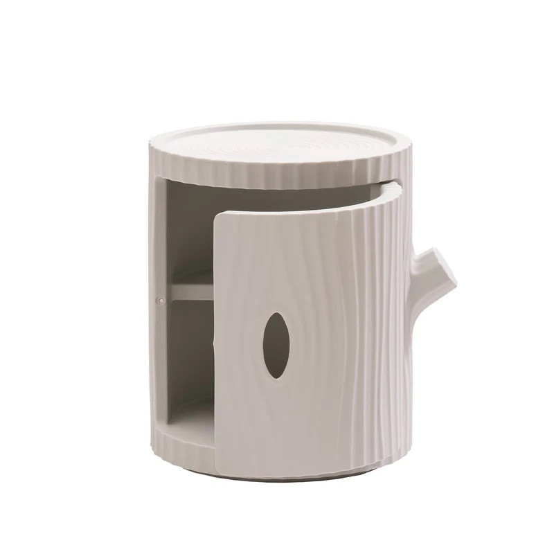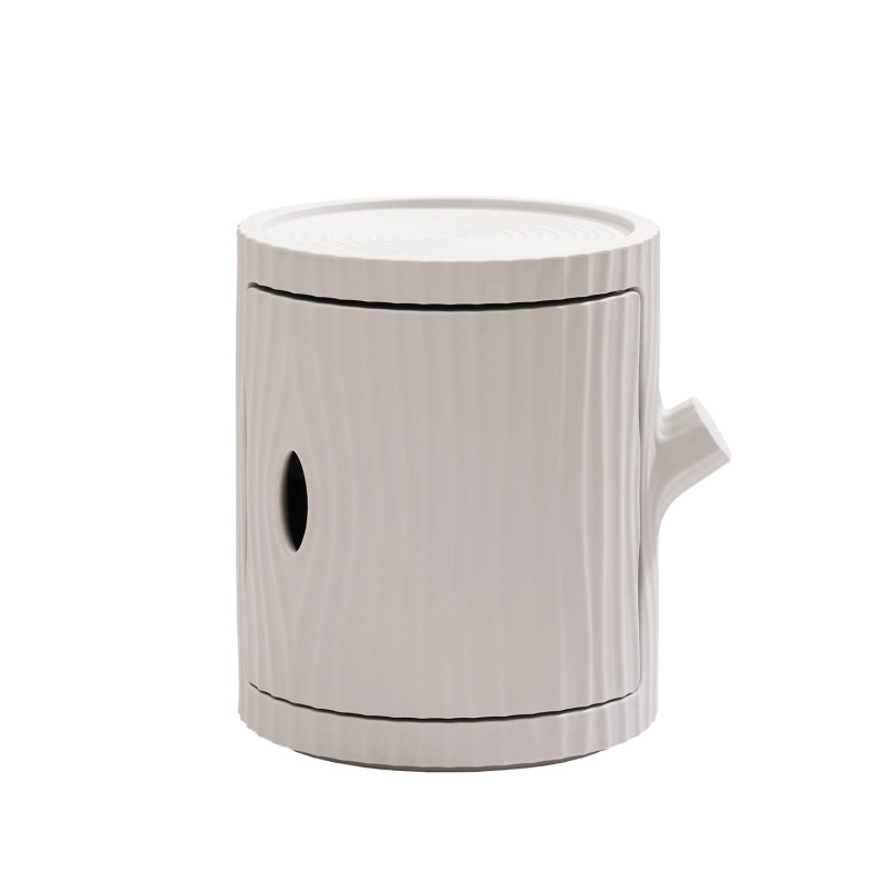 Tronco, designed by Furf Design Studio, is a multifunctional container inspired by the shape of a tree trunk. Made of recyclable polyethylene, it serves as a storage unit for essentials or as a surface to place objects. Its stackable design allows you to build sculptural columns that double as coat or towel racks.