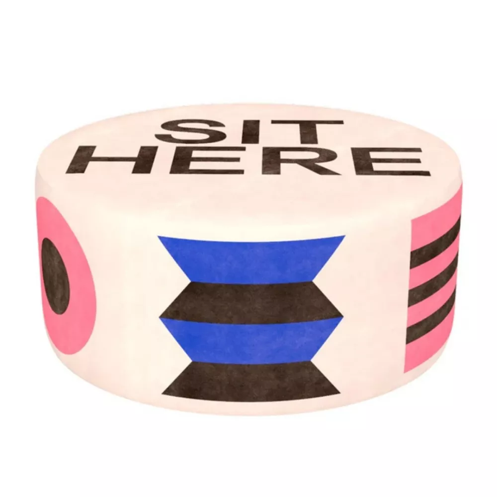 The Oggian Sit Here White pouf L, designed by Marco Oggian, blends comfort and playfulness in a furnishing piece with unique personality. Covered with lively and eye-catching patterns, it features the inviting “SIT HERE” sign on top, encouraging relaxation and interaction. A generously sized pouf that brings character to modern living spaces, combining practicality, design, and the excellence of Italian craftsmanship.
