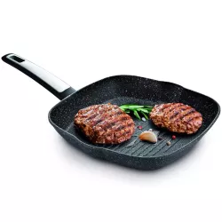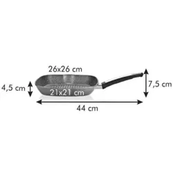 The Premium Stone grill pan by Tescoma is designed for those who want to achieve authentic grilled results at home. Its ridged surface recreates the typical grill marks on meat, fish and vegetables, while the stone effect non stick coating simulates natural stone cooking, helping preserve flavor and juices. Made from aluminum alloy with a stainless steel base, it ensures even heat distribution and long lasting performance. Perfect for everyday cooking, it allows you to prepare flavorful dishes with ease while maintaining excellent cooking results.