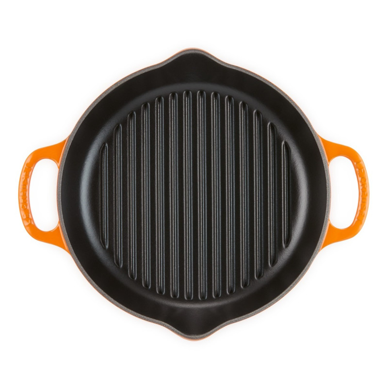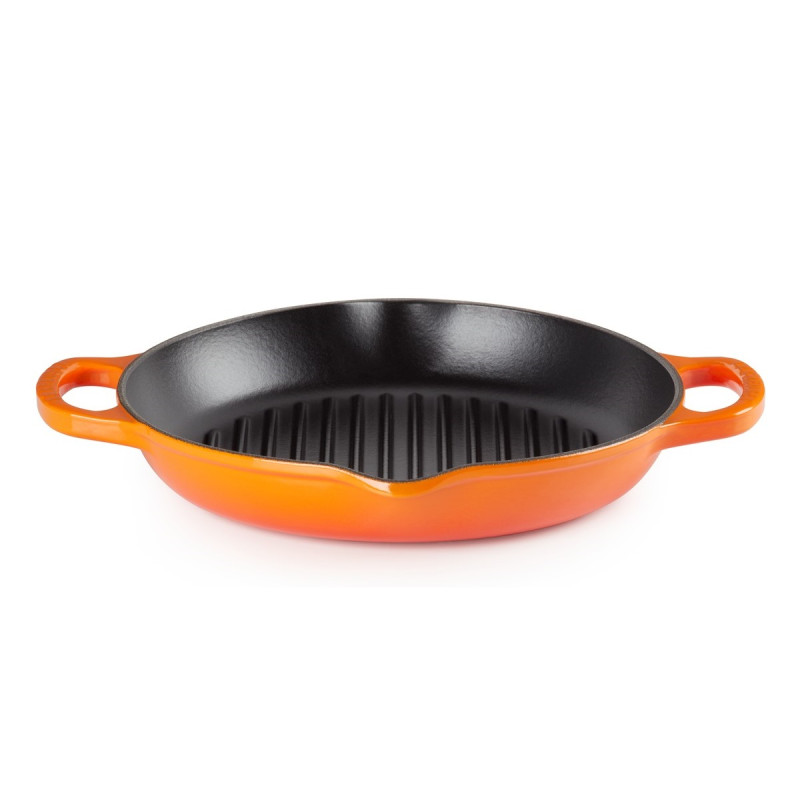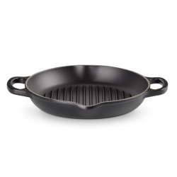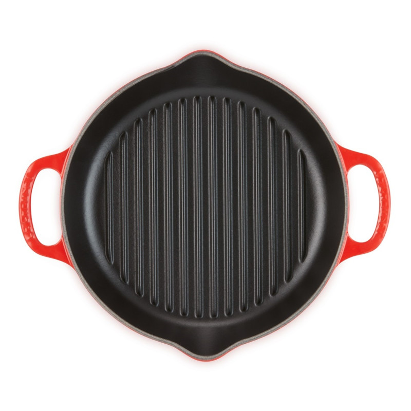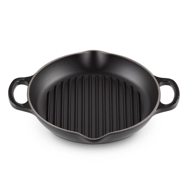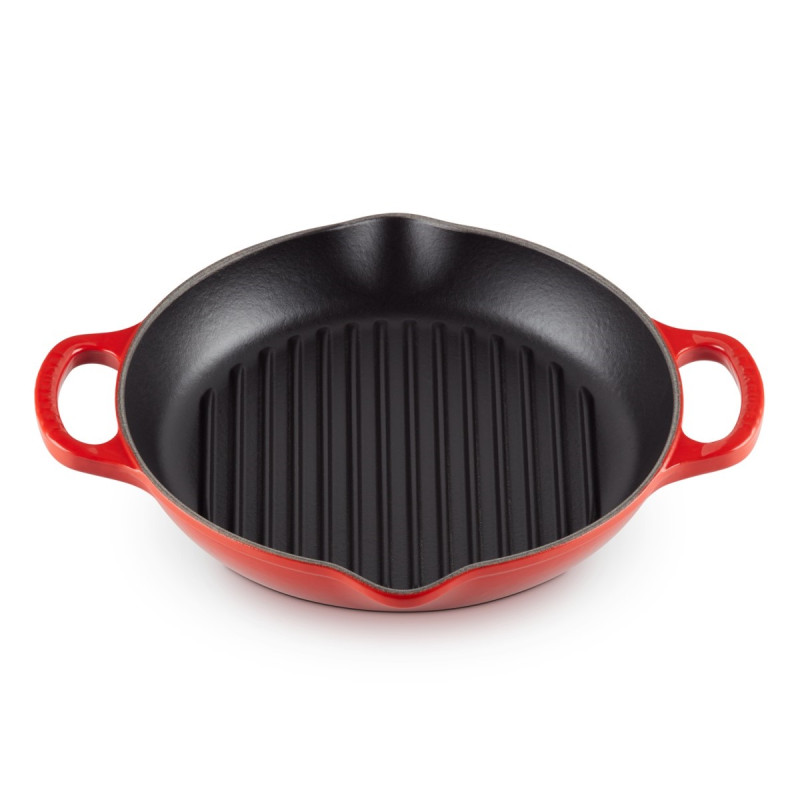 The Le Creuset Evolution round cast iron grill delivers perfect searing and authentic barbecue-style results from your kitchen. Ideal for meat, poultry, and vegetables, it ensures even heat distribution while draining excess fat. Made from enameled cast iron, it offers superior heat retention and durability, without absorbing flavors or odors. The dual spout handles provide a safe and secure grip, and the enamel interior naturally develops a semi-nonstick patina over time. Suitable for all heat sources including oven, stovetop, grill, and induction, it’s also dishwasher-safe and freezer-friendly. A versatile and elegant cooking essential backed by Le Creuset’s lifetime guarantee.