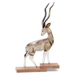 A celebration of tropical splendor, this Swarovski Idyllia totem showcases brilliant craftsmanship and vibrant detail. Crafted with 939 precision facets and around 671 hand-set crystals using the Pointiage® technique, it features a lively hummingbird resting on a pink cactus flower, next to a dragon fruit and a lemon. Polished metal accents, a stunning Shimmer finish, and a graphite-colored base complete this dynamic decorative piece, perfect for bringing nature indoors.