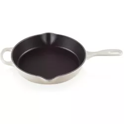 23 cm or 26 cm ENAMELED DEEP DOUBLE POUR SPOUTS SKILLET - LE CREUSET Chefs and amateur cooks trust our frying pan blindly: thanks to its Matte Black enameled interior, caramelization reaches unprecedented results. Indispensable in the kitchen, it can be used on the stovetop, in the oven, even under the grill mode, and it's suitable for searing, sealing, and browning. The enameled cast iron allows for perfect heat distribution and retention. It is the most durable and hygienic material on the market as it doesn't absorb moisture, flavor, or odor from food. Compatible with all heat sources, suitable for: oven, stovetop, and oven under grill mode. Easy to clean. Handles designed for an excellent grip, the elegant and comfortable handles allow for safe lifting of the product. Exceptional durability. Lifetime warranty. Dishwasher safe. Freezer safe