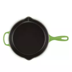 23 cm or 26 cm ENAMELED DEEP DOUBLE POUR SPOUTS SKILLET - LE CREUSET Chefs and amateur cooks trust our frying pan blindly: thanks to its Matte Black enameled interior, caramelization reaches unprecedented results. Indispensable in the kitchen, it can be used on the stovetop, in the oven, even under the grill mode, and it's suitable for searing, sealing, and browning. The enameled cast iron allows for perfect heat distribution and retention. It is the most durable and hygienic material on the market as it doesn't absorb moisture, flavor, or odor from food. Compatible with all heat sources, suitable for: oven, stovetop, and oven under grill mode. Easy to clean. Handles designed for an excellent grip, the elegant and comfortable handles allow for safe lifting of the product. Exceptional durability. Lifetime warranty. Dishwasher safe. Freezer safe