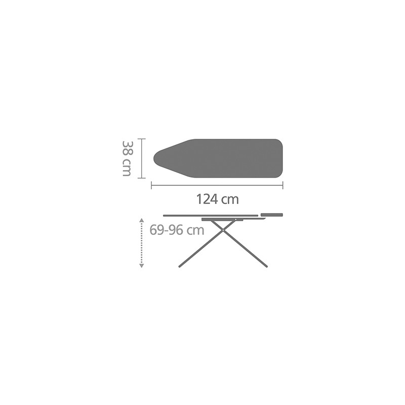 BLUE IRONING "B" BOARD, 124 x 38 cm, 134265 - BRABANTIA Robust, stable and designed for easy ironing: this Brabantia Standard B ironing board sets standards. It has a steam iron rest suitable for left and right handed users, a sturdy and stable frame and more. Weight: 13.7 lb Dimensions: Height: 160 cm Length: 7 cm Width: 46.2 cm