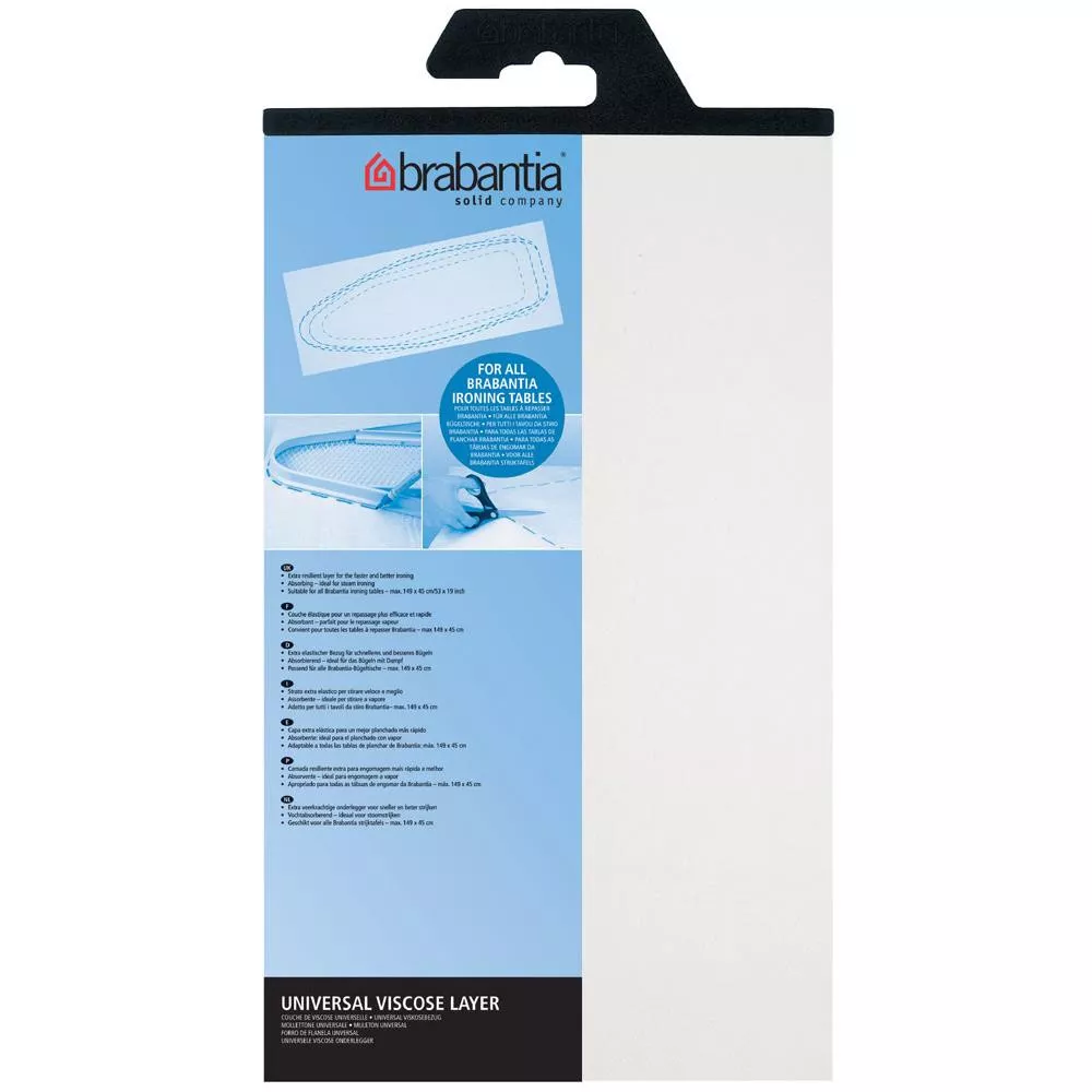 Extra thick, resilient felt layer to optimize your ironing comfort in combination with a Brabantia ironing table cover. Suitable for normal and steam ironing and easy to adjust the size/dimensions of your ironing table. Max dimensions max. 135 x 49 cm/53 x 19 inch. SKY 196423