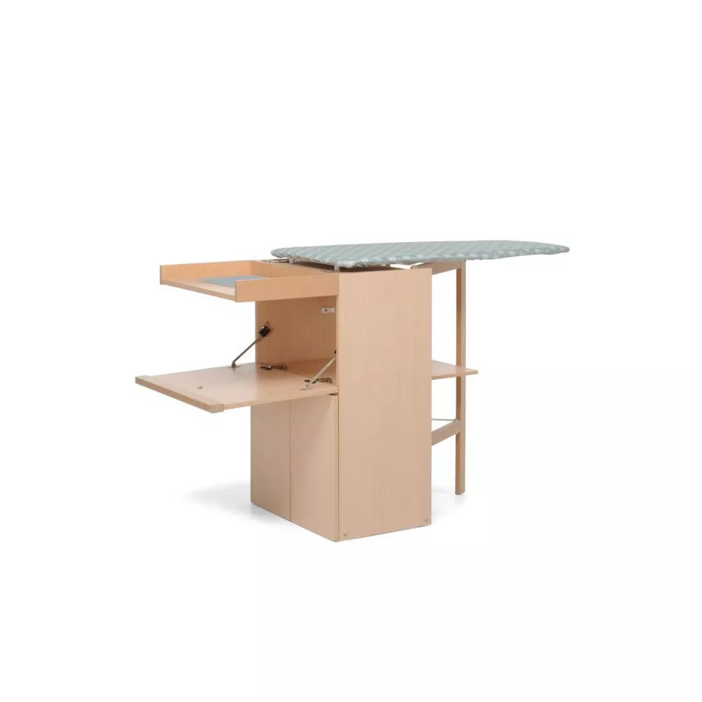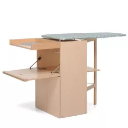 LO STIRO IRONING STATION - FOPPAPEDRETTI Lo Stiro by Foppapedretti is a wooden cupboard with foldaway ironing board, complete with convenient shelves for the linen and the iron. When closed, LoStiro is a stylish and elegant cupboard which moves easily thanks to its scratch-proof castors. The solid frame of the cupboard is in melamine chipboard and the support frame to the ironing board is in solid varnished beechwood, while the poplar plywood ironing board has ventilation holes. Laundry basket, wheels and 2 lateral board. Dimension cm Height, Depth, lenght