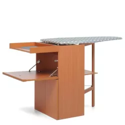 LO STIRO IRONING STATION - FOPPAPEDRETTI Lo Stiro by Foppapedretti is a wooden cupboard with foldaway ironing board, complete with convenient shelves for the linen and the iron. When closed, LoStiro is a stylish and elegant cupboard which moves easily thanks to its scratch-proof castors. The solid frame of the cupboard is in melamine chipboard and the support frame to the ironing board is in solid varnished beechwood, while the poplar plywood ironing board has ventilation holes. Laundry basket, wheels and 2 lateral board. Dimension cm Height, Depth, lenght