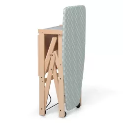 The frame is made of solid beechwood, while the shelves are covered particle board. The ironing board is made of breathable poplar plywood, ensuring optimal ironing results. Four sturdy legs provide stability and eliminate wobbling during use.