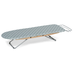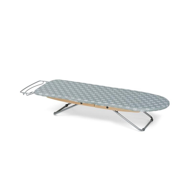FOLDABLE IRONING BOARD, STIROFAST - FOPPA PEDRETTI Foldable tabletop ironing board. Solid multi-layer poplar wood surface with breathable holes. Equipped with an iron holder grid and a hanging hook for storage. Comes with a transport bag. Dimensions in cm (Height, Depth, Length): Open: H 18 x D 34 x L 114 cm Closed: H 10 x D 34 x L 50 cm