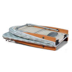 FOLDABLE IRONING BOARD, STIROFAST - FOPPA PEDRETTI Foldable tabletop ironing board. Solid multi-layer poplar wood surface with breathable holes. Equipped with an iron holder grid and a hanging hook for storage. Comes with a transport bag. Dimensions in cm (Height, Depth, Length): Open: H 18 x D 34 x L 114 cm Closed: H 10 x D 34 x L 50 cm