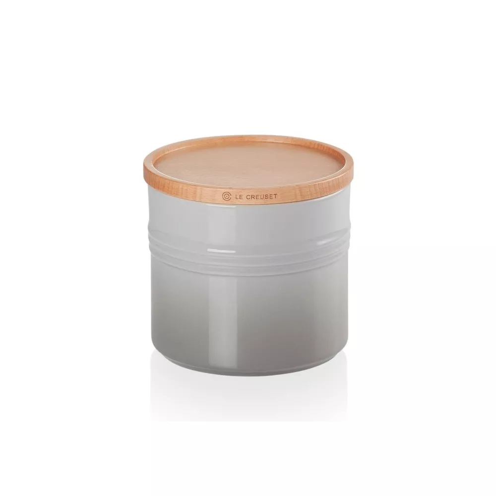 STONEWARE M STORAGE JAR WITH WOODEN LID, 10 CM - LE CREUSET This stoneware storage jar is on hand to help you organise your kitchen, your way. Use it to keep your tea, coffee and sugar fresh or store ingredients on open shelving. Carefully designed for style and function, the jar stacks neatly with others. - Always up to scratch - Easy to clean - It maintains even temperature and is exceptionally strong and durable: is thermoresistant from -23°C to +260°C. - Material: Stoneware - Warranty 10 years - Capacity: 0.54 L - Dimensions: L 9.9 cm x W 9.9 cm x H 12.2 cm