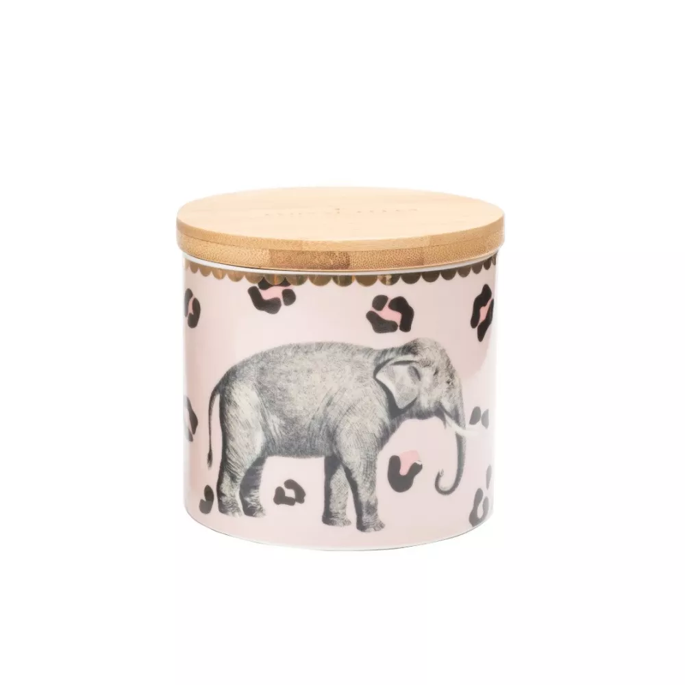 0.5 LITER JAR, ELEPHANT A22009004 - YVONNE ELLEN Add Yvonne Ellen's porcelain jars to your kitchen for an elegant space-saving solution! The bamboo lid fits snugly onto the jar, making it airtight and suitable for storing dry foods, coffee, tea or sugar. Featuring Yvonne Ellen's iconic elephant illustration, this jar should have a prominent place on your countertop! Made from porcelain for a fabulous tactile feel. Size: H 9.5 x Ø 10 cm.